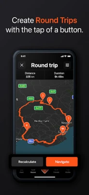 - Curvy Routes: Select curvy routes or autogenerate a round trip for an exciting and thrilling ride with plenty of twists and curves.