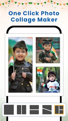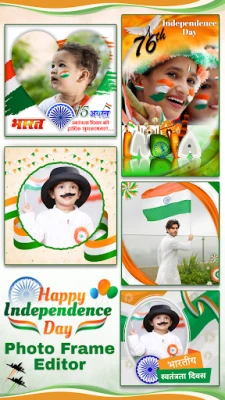 Independence Day Collage Maker lets you create beautiful photo collages with Indian flag frames and tricolor themes.