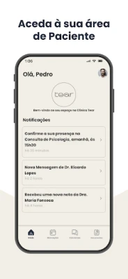 A app da Clínica Tear permite aos seus pacientes acederem à sua Área de Paciente.