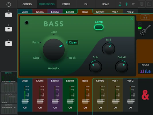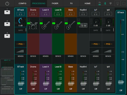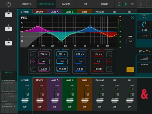 It gives audio engineers and performers the ability to adjust the mix from anywhere in room, on the stage or even amongst the audience. Two instances of CQ MixPad can be connected to a CQ, each providing independent control of processing, send levels and all other mixer parameters.