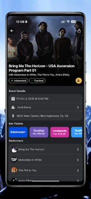 • Discover Events: Find concerts, sports, comedy shows, and more near you or worldwide.