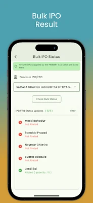 नेपाली शेयर बजारमा लगानी गर्न चाहनुहुन्छ? हाम्रो IPO Bulk Apply एपमार्फत तपाईले एकैपटक धेरै IPO हरू आवेदन गर्न सक्नुहुन्छ र परिणामहरू सजिलै ट्र्याक गर्न सक्नुहुन्छ। यो एपले NEPSE डेटा, स्टक विश्लेषण, वित्तीय समाचार, र बजार अपडेटहरू प्रदान गर्छ। IPO को नतिजा हेर्न, बजारको अवस्था बुझ्न, तथा लगानी सजिलो बनाउन हाम्रो एप उत्तम समाधान हो। अब नै डाउनलोड गर्नुहोस् र नेपाल शेयर बजारलाई अझ नजिकबाट अनुगमन गर्नुहोस्!