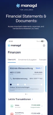 The app gives you transparent insights into everything that matters – whether you are an owner tracking rental income or a tenant managing your lease.
