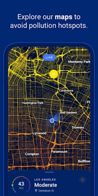DETAILED MAPS: Live, street-by-street air quality maps give you detailed information about pollution levels on each street, in real time! Find the best route to work, pick the cleanest parks for a playdate—it’s all there in a stunning, easy-to-read map.