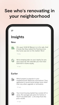 - Get updates about neighbors who have renovated and find out how much they spent