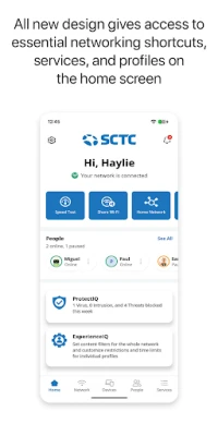 SCTC Managed WiFi provides subscribers with the tools to secure and take control of their home Wi-Fi network. Protect your home with app features like network security, password and SSID management. Take control with app features such as parental controls, device management, view connected devices, and perform bandwidth tests.