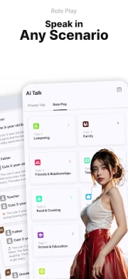 The more you converse with your AI partners, the more experience points you accumulate. Level up to unlock exciting new features within the app, gamifying your language learning journey.