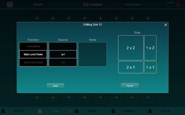 Typical applications include simple source selection to more complex venue audio management. SQ-Control can also be used to control send levels to a single mix for monitoring, recording or live streaming.