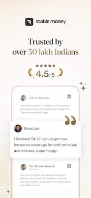 Download Stable Money App today & start investing smarter with FDs, Gold & Silver Mutual Funds, Bonds (through Stable Bonds - www.stablebonds.in), RDs & Secured Credit Cards.