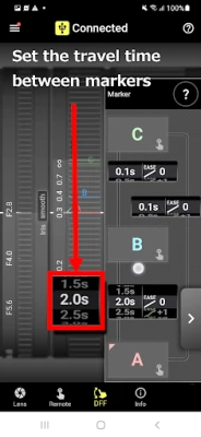 DFF is a function that allows you to control focus and aperture by scrolling the ring on the screen.