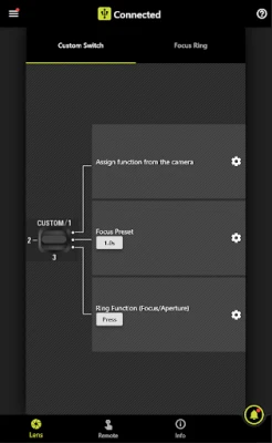 Custom functions from the camera body can be assigned.