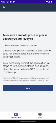 - Provides a fast and easy way to apply for an initial or renewal ADB using your mobile device. Simply download the app, fill the required information, take a digital photo, and submit. You will receive a notification immediately after submitting your application.