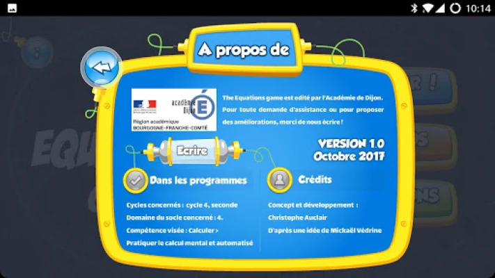 The Equations Game est une application éditée par l'Académie de Dijon.